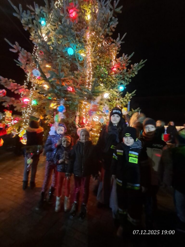 Na zakończenie dzieci wspólnie udekorowały gminną choinkę ozdobami, które samodzielnie przygotowały. Dzięki nim drzewko zyskało wyjątkowy, niepowtarzalny charakter – pełen barw i dziecięcej radości.