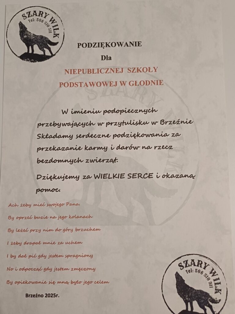 Dzięki ogromnemu zaangażowaniu naszej społeczności szkolnej udało się wesprzeć potrzebujące zwierzaki i realnie pomóc tym, którzy sami głosu nie mają.