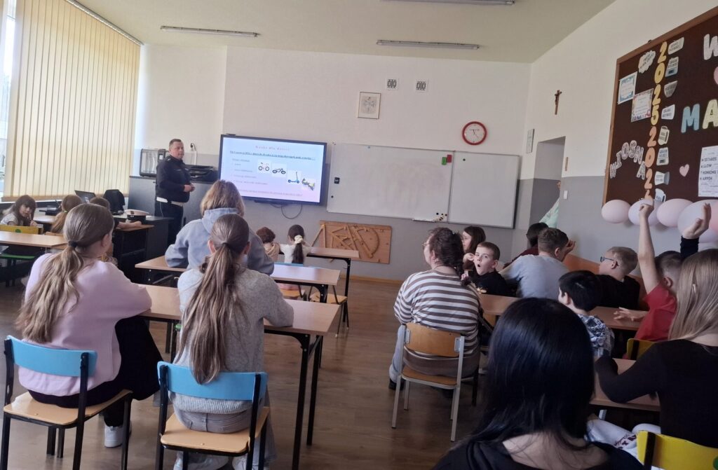 Szczególną uwagę poświęcono także coraz popularniejszym hulajnogom – dzieci dowiedziały się, gdzie można z nich korzystać oraz jakie zasady obowiązują, aby jazda była bezpieczna dla wszystkich.