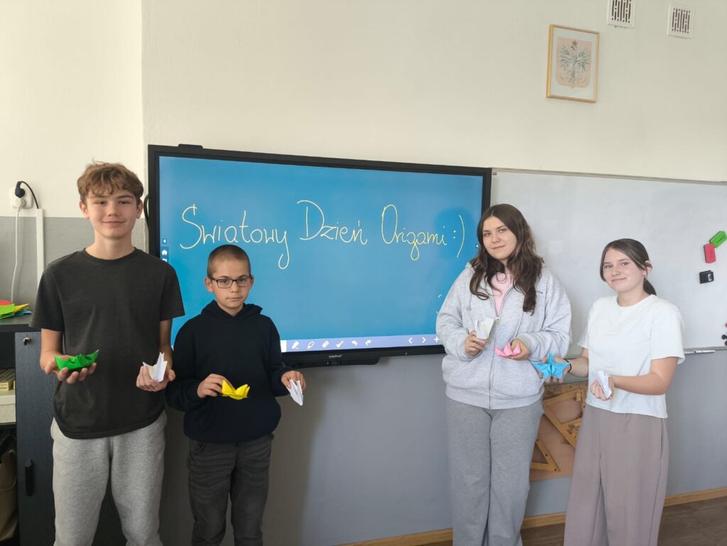 24 października obchodziliśmy Światowy Dzień Origami – japońskiej sztuki składania papieru, która rozwija cierpliwość, koncentrację i wyobraźnię Tego dnia nasza szkoła zamieniła się w prawdziwe papierowe pracownie!